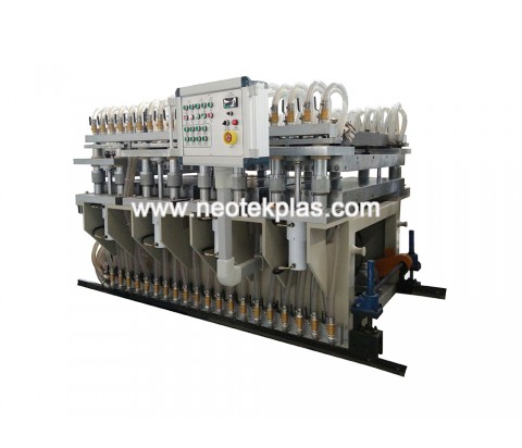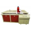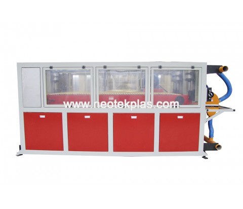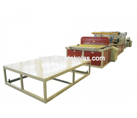 木塑發(fā)泡板擠出生產(chǎn)線的優(yōu)勢在于能大大降低設備成本和配方成本(和真結皮發(fā)泡設備相比),產(chǎn)品質(zhì)量和各方面參數(shù)都接近或優(yōu)于真結皮發(fā)泡板(1.22m制品寬,5~20mm厚,密度~0.5g/cm3,表面強度:50~75洛氏硬度),同時制品表面可經(jīng)過燙印,印刷或貼膜,獲得不同樣式和圖案,此外在有些需要折邊的應用場合,經(jīng)過熱彎曲處理可以達到應用要求。 設備組成:由擠出機,分配器,模具,定型模板,冷卻架,牽引機,切割機,堆料臺組成,設備精度高,操作方便。