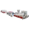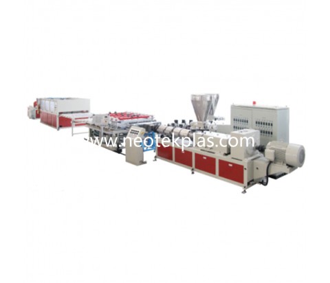 The machine consists main extruder & co-extruder, distributor, calibrator moulding block,cooling rack, haul off cutter & stacker.