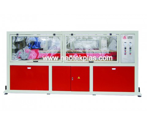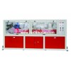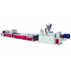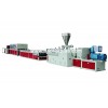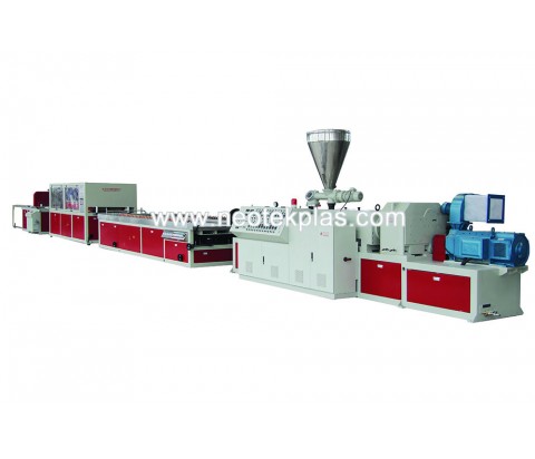 生產(chǎn)線采用SJZ錐形雙螺桿擠出機(jī),輔機(jī)由真空定徑臺、牽引機(jī)、切割機(jī)及堆料架組成。