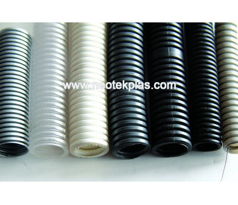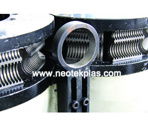 生產(chǎn)線配置不同的擠出機(jī)可生產(chǎn)PE、PP、PVC等材料的單臂波紋管。 波紋管成型機(jī)可生產(chǎn)一模雙徑的小單臂波紋管,降低模塊成本,減少更換模塊的時間,成型速度最高為25m/min