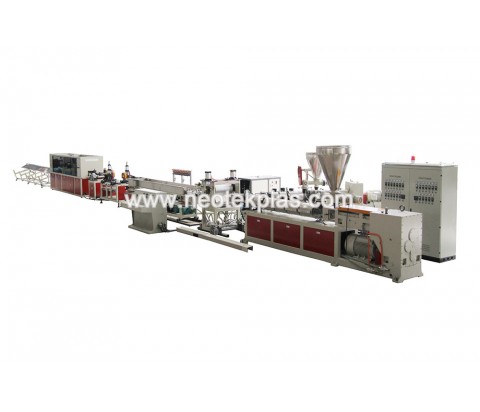掛壁板用于外墻面的保護(hù),表面課覆蓋PVC、ASA、PMMA的材料,適用于各種惡劣氣候環(huán)境。生產(chǎn)設(shè)備由雙螺桿擠出機(jī)、共擠機(jī)、壓花機(jī)、冷卻機(jī)、真空定型機(jī)、沖孔機(jī)、牽引機(jī)、切割機(jī)、翻料架等組成。根據(jù)客戶需要提供6-8m/min和10-20m/min速度的設(shè)備和模具。